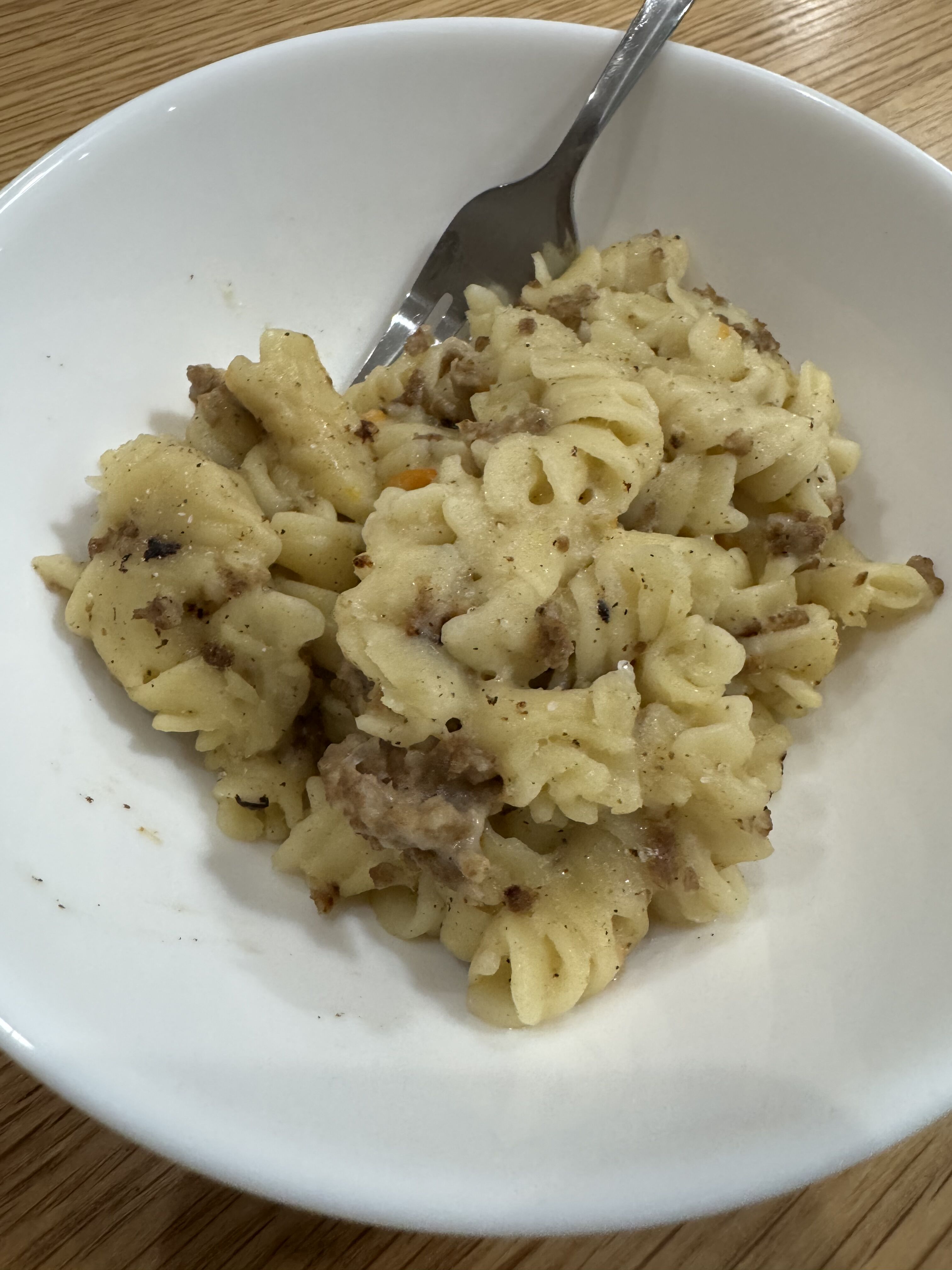 ひき肉マカロニ。シンプルで子供は食べやすい。肉は欠かさない。